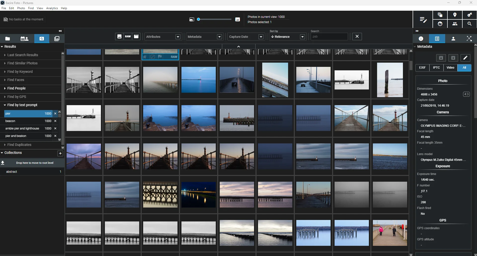 Если я хочу создать мудборд из собственных архивов, я использую Excire. Эта программа находит нужные снимки по ключевым словам, даже если вы не расставляли теги. Запросы вроде «Пирс на рассвете» или «Длинная выдержка» мгновенно выдают референсы, подсказывающие, как поймать идеальный кадр в похожих условиях снова.